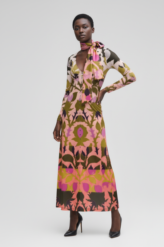 Silk Scarf in Spots Stripes Roses Golden Sunset