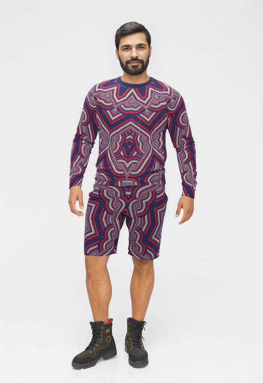 Slim Fit Roll Neck Top in Geo Chain Blue