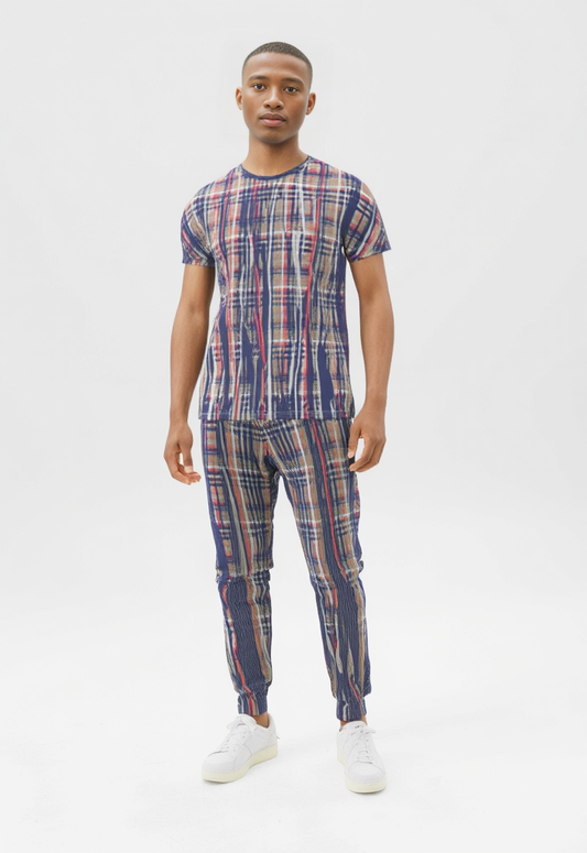 Sleeveless Midi Dress in Dripping Plaid Blue