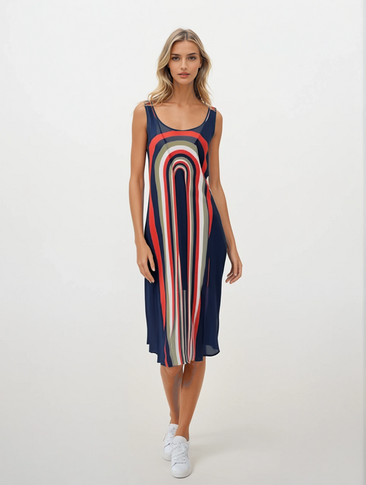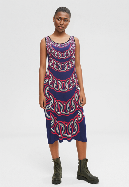 Sleeveless Midi Dress in graduating chains blue