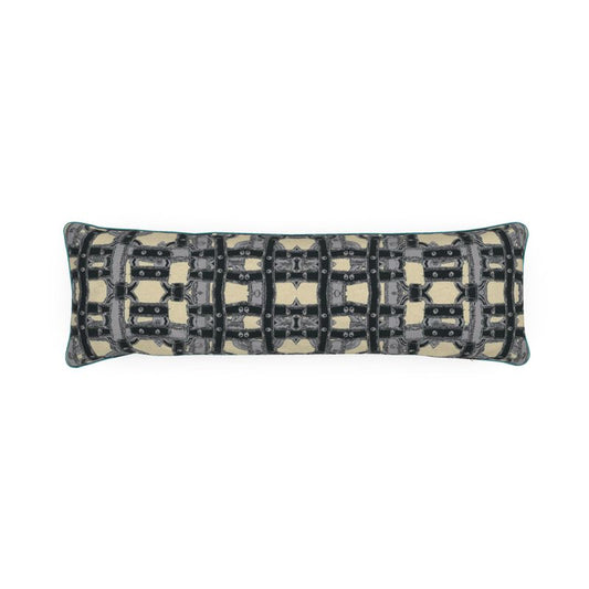 Big Bolster Cushion in Dripping Plaid Gray Coral