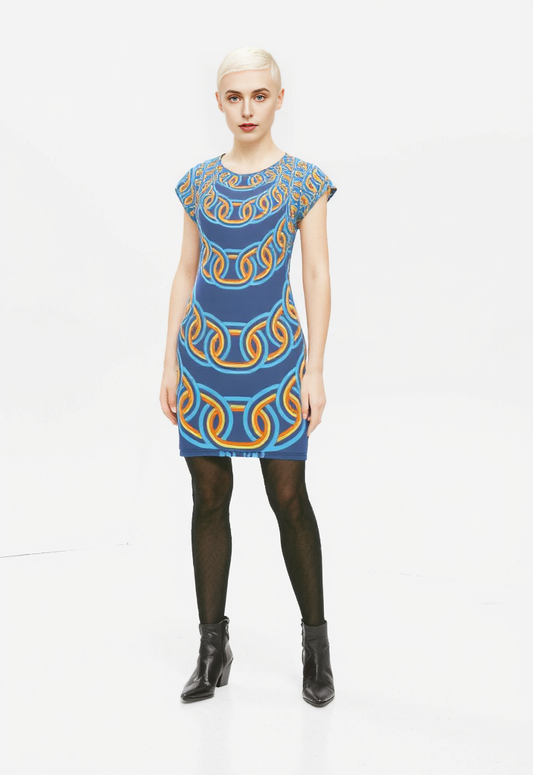 Tunic T Shirt Dress in Gaduating Chains Sports Blue
