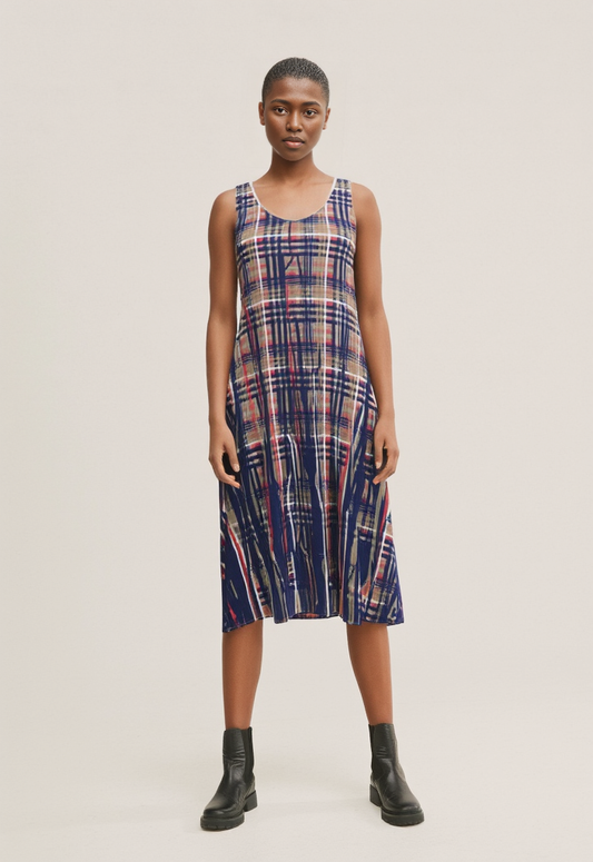 Sleeveless Midi Dress in Dripping Plaid Blue