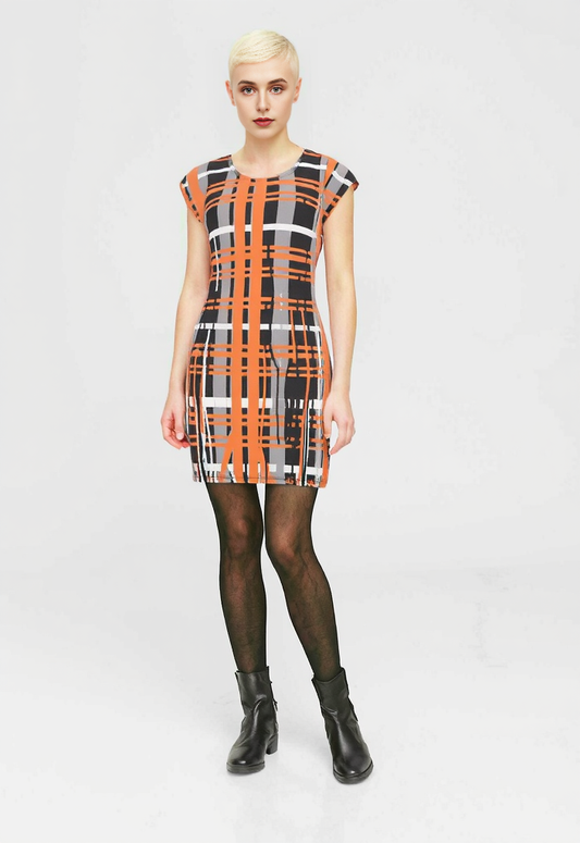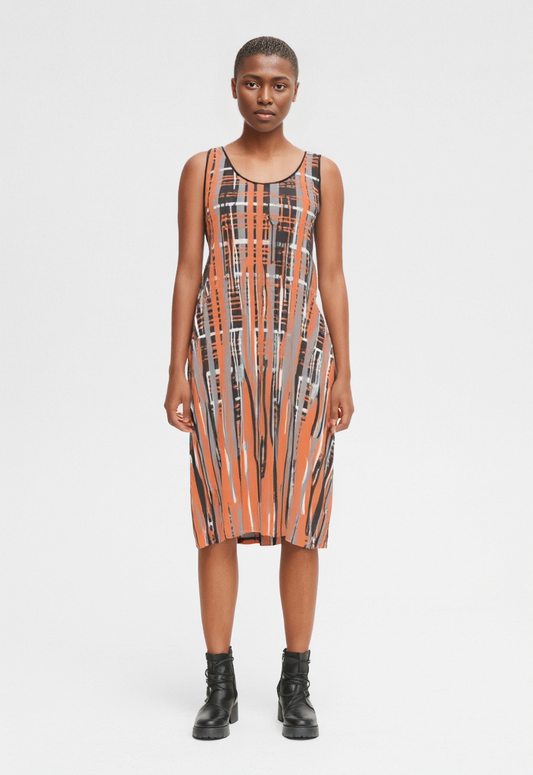 Sleevless Midi Dress in Dripping Plaid Gray Coral