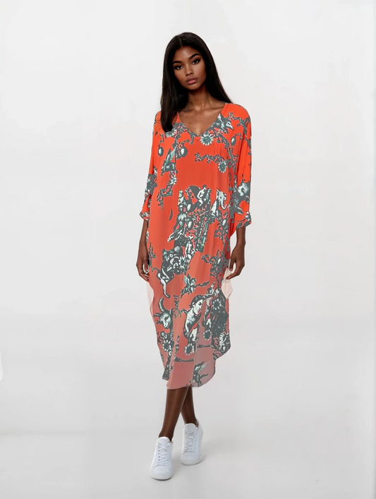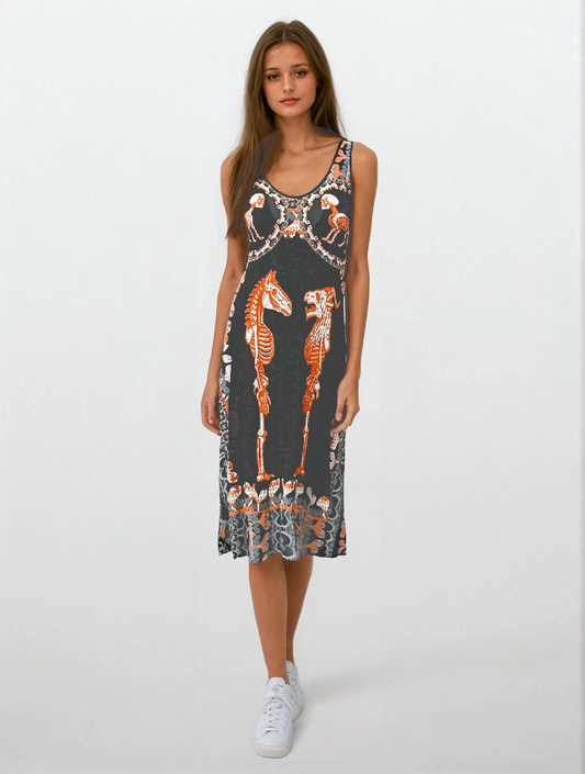 Sleeveless Midi Dress in Bona Bones Gray Coral