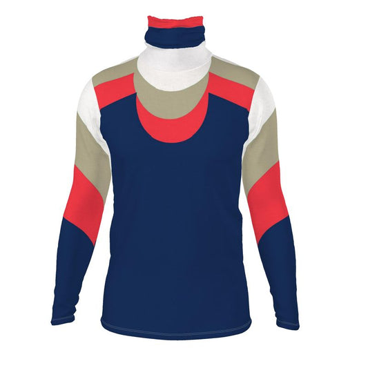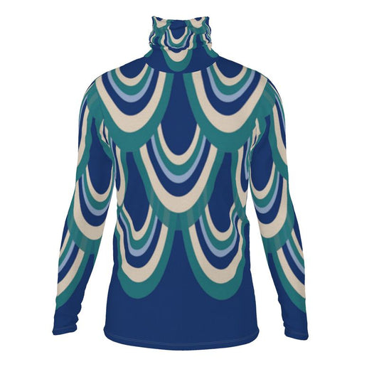 Slim Fit Roll Neck Top in Geo Chain Blue