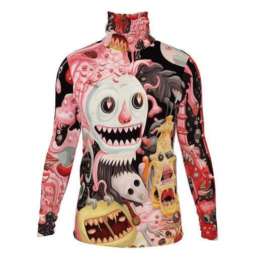 Slim Fit Roll Neck Top in Dripping Flowers Gray Coral