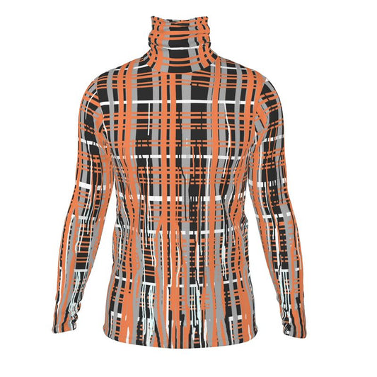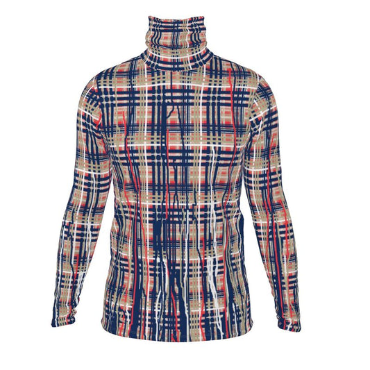 Slim Fit Roll Neck in Dripping Plaid Gray Coral