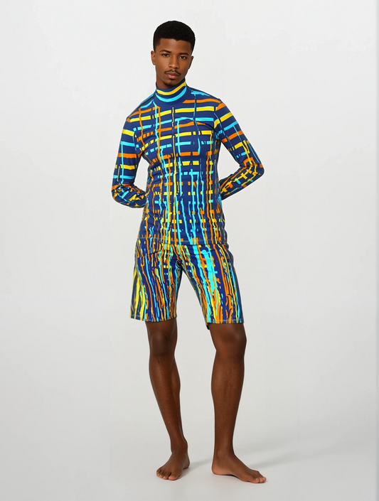 Slin Fit Roll Neck in Dripping Stripes Vivid