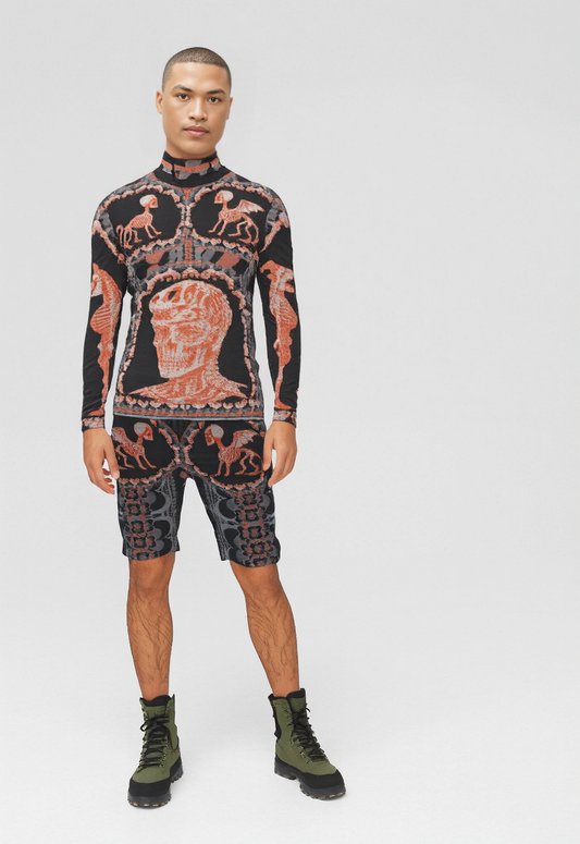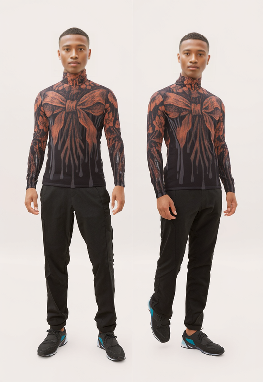 Slim Fit Roll Neck in Dripping Flowers Orange