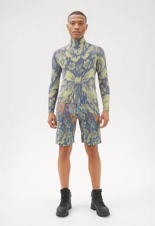 Slim Fit Roll Neck in Tempest Field Night Garden