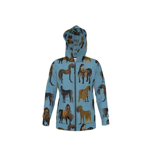 Hoodie Jacket with zip iin hairy horses air force blu
