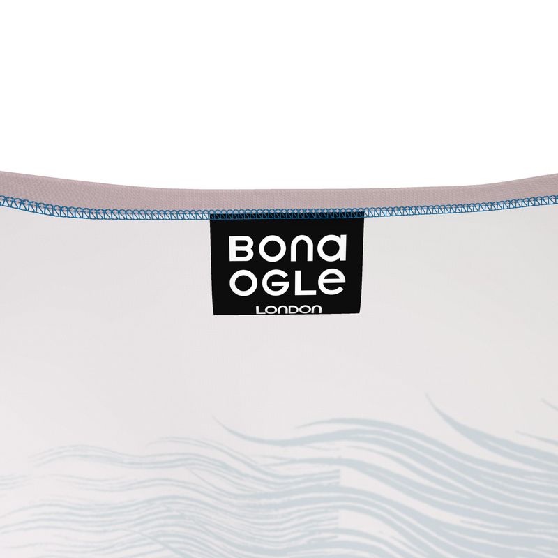 Made to order in England, this crop top is crafted from soft, sustainable UK-sourced stretch fabric. The print is a wild countryside that wraps the form like a living landscape. Deep teal to midnight navy lines swirl across an ombré of beige to lilac, glowing with quiet drama. Perfect paired with the matching leggings or anything that needs a hit of art and attitude. Quick to make, built to last, and impossible to ignore.
