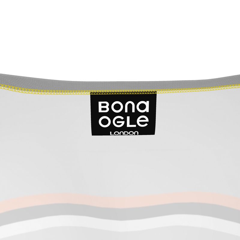 This sustainable printed crop top is made to order in the UK in just a few days, cut in either soft cotton jersey or sleek recycled polyester. The 3D Square design frames the bust, back, and sides with squared-off lines that are neat, flattering, and endlessly wearable. In grey and coral, the look is modern minimalism with a playful pop — calm base tones with a flash of warmth. A versatile crop top that looks sharp with jeans, tailored trousers, or layered under a jacket.
