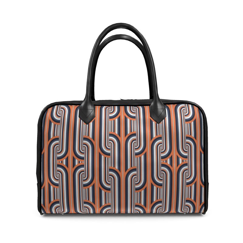 Hey, I'm Herbert the Holdall! I used to be a pretty basic bag, but then the awesome folks at Bona Ogle found me and brought me to their epic bash at Bona Ogle Towers. That's when they adopted me and gave me this funky, chunky gray and coral design of abstract chains. Want to take a piece of that legendary night home with you? You can get a luxe leather or cool canvas version of me in a small overnight or big weekend size. All handmade in England and free shipping in the UK!