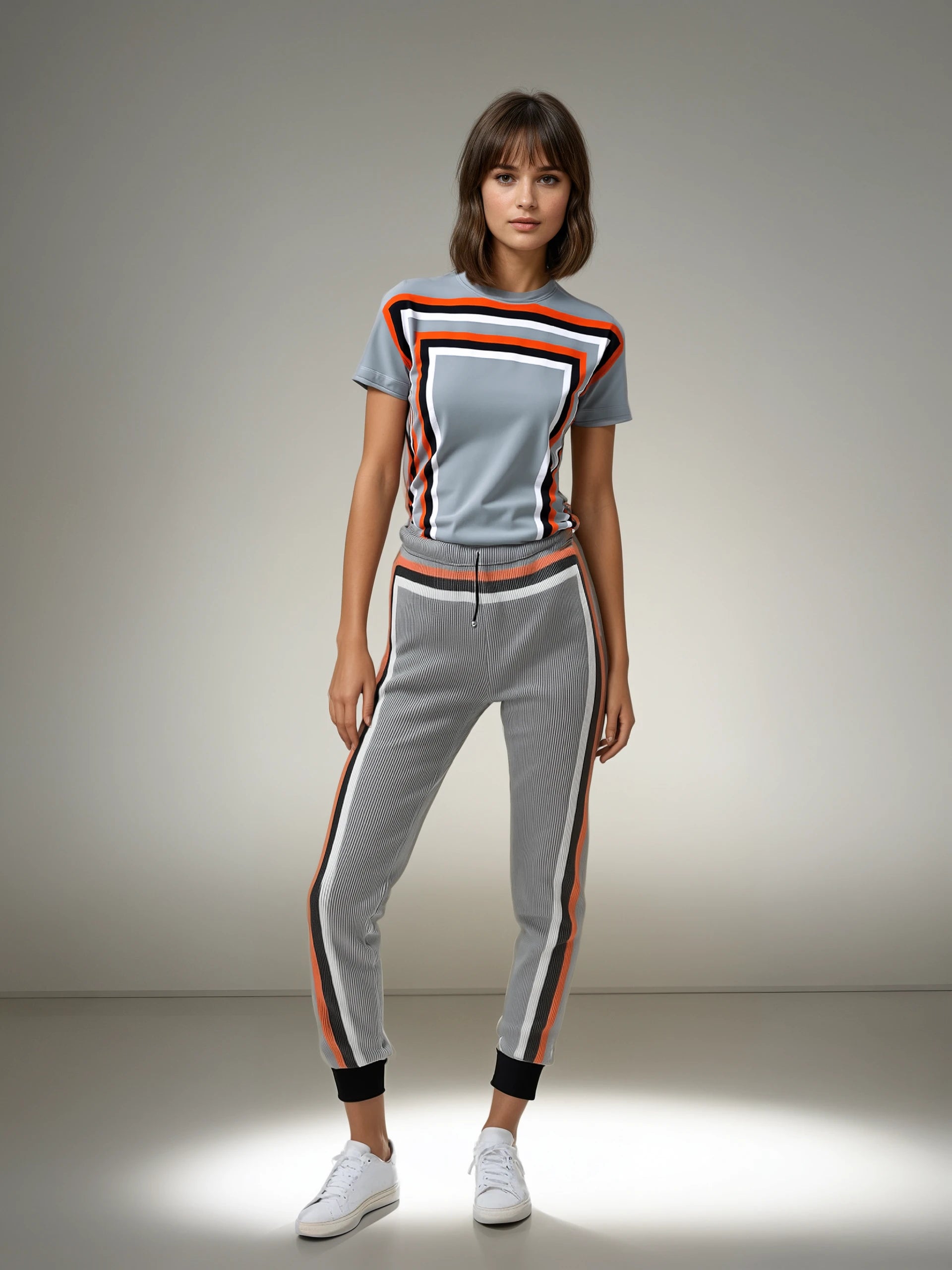 Meet the joggers with couture energy. Squared-off at the waist for a structured silhouette, they feature a bold striped detail that frames the front and traces the curves of your derrière with artful precision. Designed and made to order in England, they’re more than gym gear—they’re a wardrobe statement. The moody greys and warm coral hues invite mix-and-match moments with your favorite prints.Crafted for movement, styled for impact.And yes—UK delivery is free.