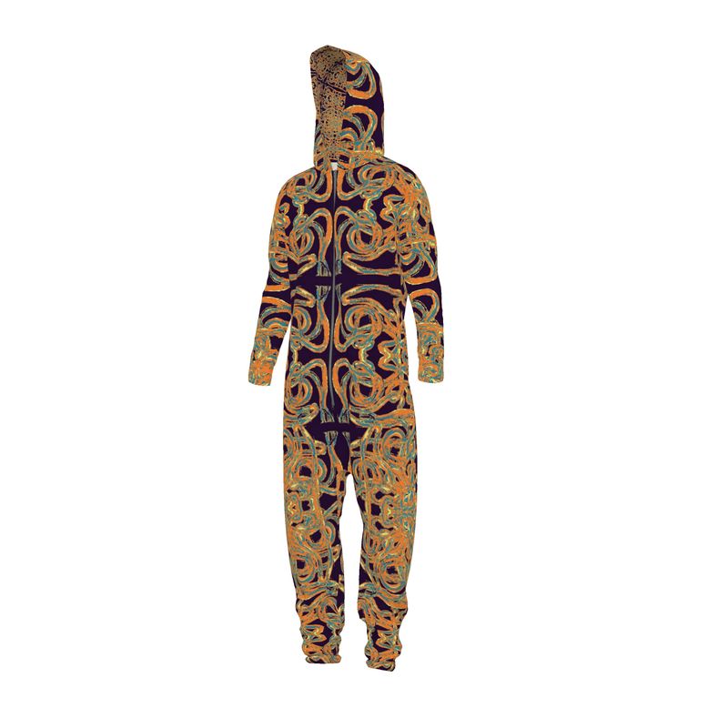 Slip into your Bona Ogle London Onesie, and you'll declare, "I'm the Onesie and only!" It's a terrible Dad joke, I know. But you've got to play your own kind of music, so for a head turning outfit, pair with bomber jacket and high-top's in matching print., These look best worn big, but rest assured, it fits true to size if you prefer relaxed rather than oversized. Crafted to order in the UK, these onesies feature a low crotch, a cosy lined hood, and convenient pockets. Your order will be swiftly made and dispatched, usually within 48 hours (excluding weekends and holidays). This print is from a series that used tangled electric cables as their inspiration.