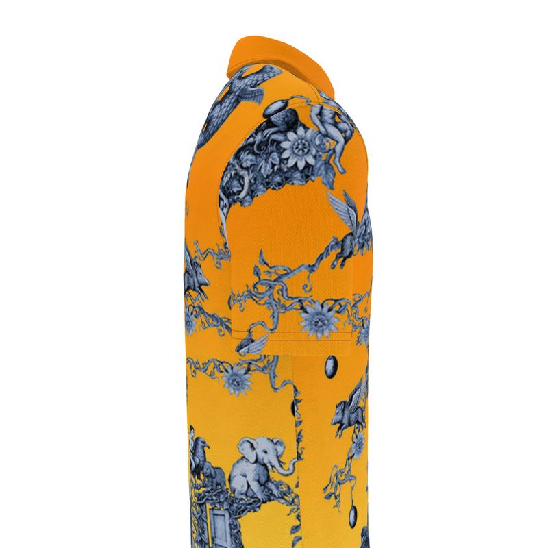 Imagine Hieronymus Bosch—yes, the surrealist master himself—somehow whisked through time to the opulent 18th-century French court. Now picture him sketching a Toile de Jouy... in vivid yellow, fiery orange, and deep lapis lazuli.That’s the unlikely spark behind our latest polo shirt—a riot of color, history, and imagination, reinterpreted from (supposedly) long-lost designs found in a mysterious antique drawer.Bold. Artistic. Utterly unique.Lovingly made to order in the UK and ready to ship in just a few days.It’s not just a shirt—it’s a story you can wear.Add a touch of surreal style to your wardrobe today.