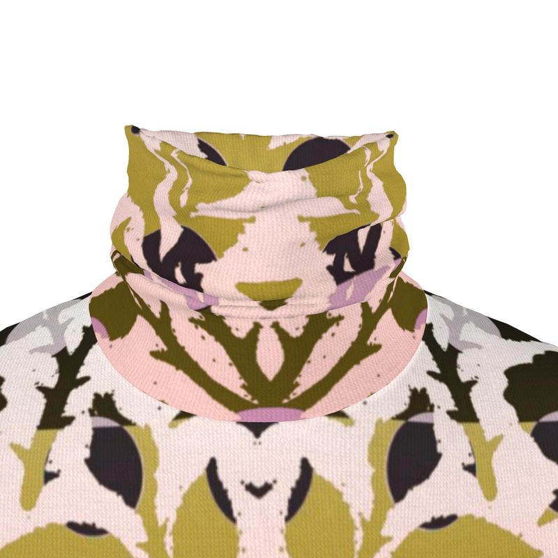 A sleek staple with a statement spin. This fitted roll neck hugs the body in recycled fabric where available, printed with layers of soft pinks, golden ochre, and smoky grays using ecological inks. It’s smooth, breathable, and beautifully British-made — crafted to order to reduce waste. The kind of piece that slips easily under tailoring, yet stands strong on its own. Quiet luxury with a conscience.